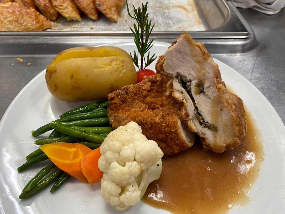 - Breakfast and lunch served as a buffet