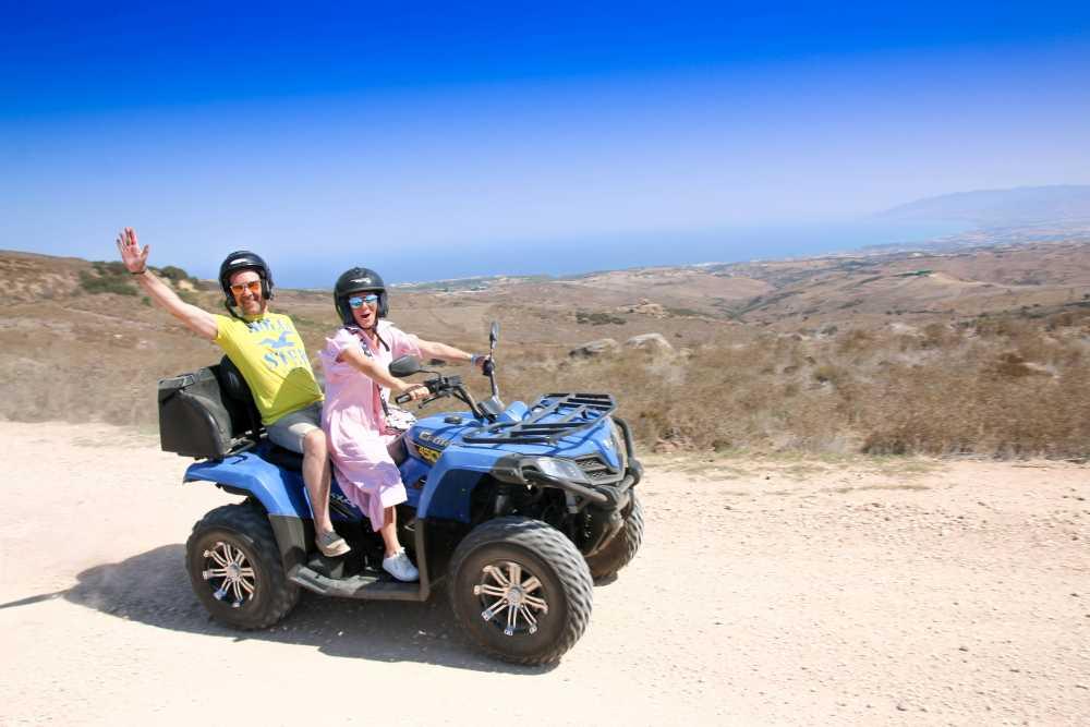 12:00 noon. Now you’re going on an ATV trip into the Acamas Mountains and sailing to the Blue Lagoon. On the way back to the hotel, you hop over to shop at Paphos’s designer brands shopping mall.