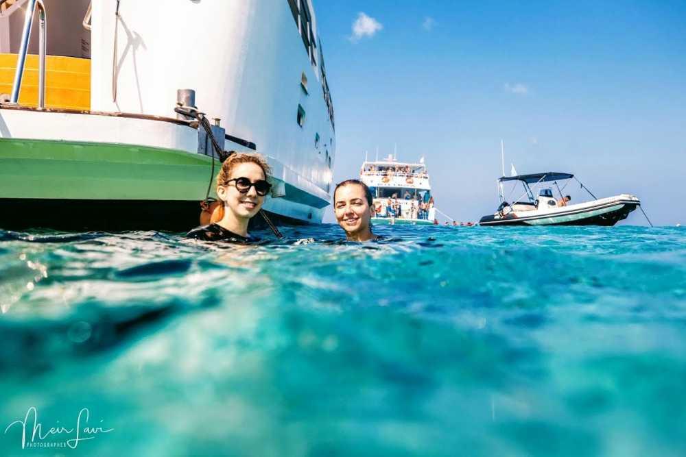 - The ship anchors in the center of the lagoon and you can dive into the turquoise waters.