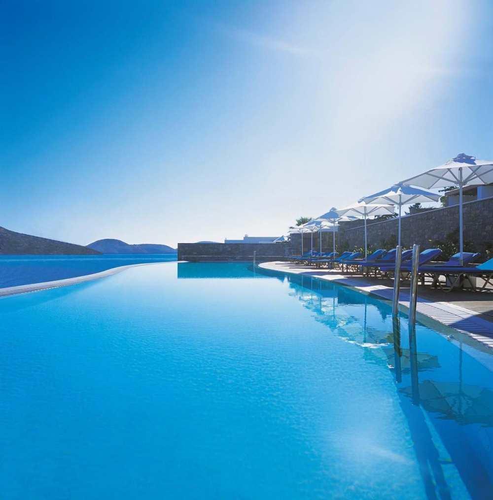 The hotel is a luxurious award winning, 5 star resort and member of The Leading Hotels of the World with VIP accommodations including luxury villas with heated outdoor pools and 19 accommodation types. The resort boasts 2 private beaches, an indoor heated pool, an outdoor pool, a luxury Spa, on-site sports facilities (including Tennis courts, Football pitches & Volleyball courts), water sports and restaurants with breathtaking views of the Mirabello Bay.