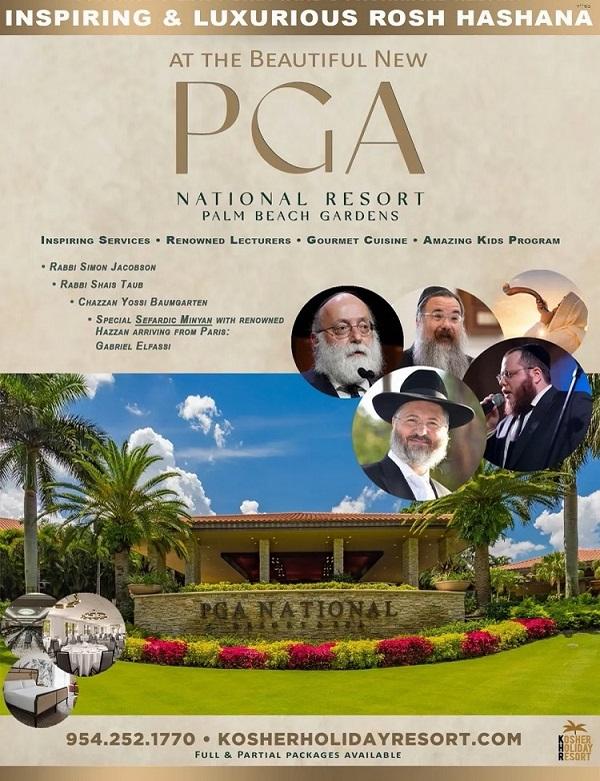 This year, the Rosh Hashana program is moving to the luxurious PGA National Resort in Palm Beach, Florida. PGA is recognized as a world-class destination for its glamorous spa, family vacations, championship golf and its annual sold-out Kosher for Passover retreat.