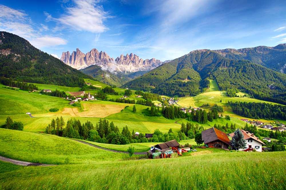 - Day Four - The Dolomites: Today we will tour one of Europe's most beautiful mountain regions - the Dolomite Mountains in northeastern Italy, on the border with Austria and Switzerland, a magical day of calm and stunning views, cliffs, forests, lakes and glaciers. The mountains are interspersed with picturesque little towns that can be reached by winding roads.