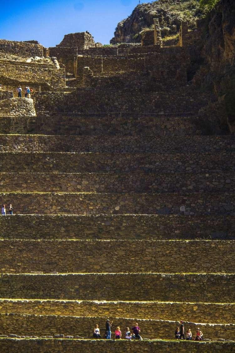 Above the town of Ollantaytambo rises the fortress of Ollantaytambo, a formidable stone structure that climbs massive terraces to the top of a peak. It was the valley’s main defense against the Antis from the neighboring rain forests.
