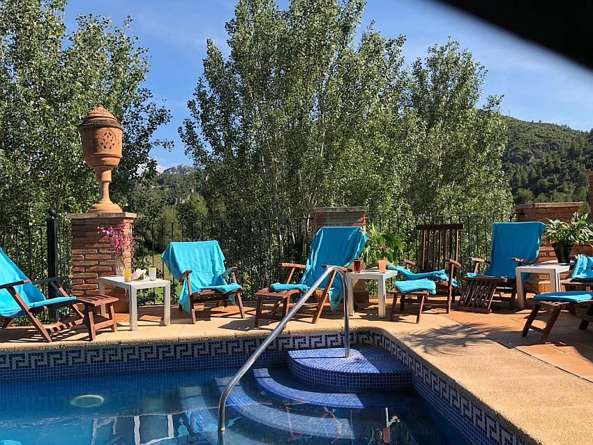 - Features an outdoor pool