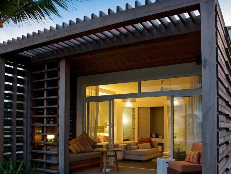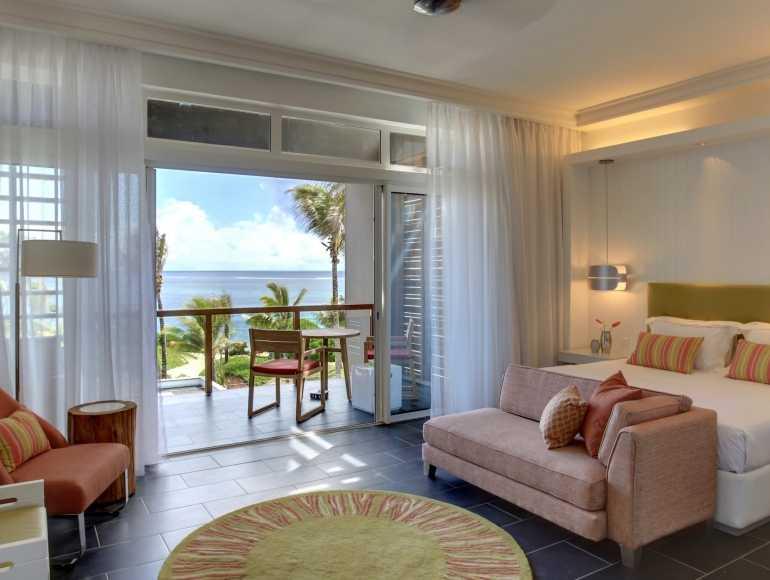 Junior Suite Ocean-Front • 65 m2: Contemporary first-class rooms with king size bed or double beds on the ground floor / first floor with an elegant tropical touch, including a spacious private terrace or balcony directly on the beach exclusive with butler service, private cove and turquoise lagoon.