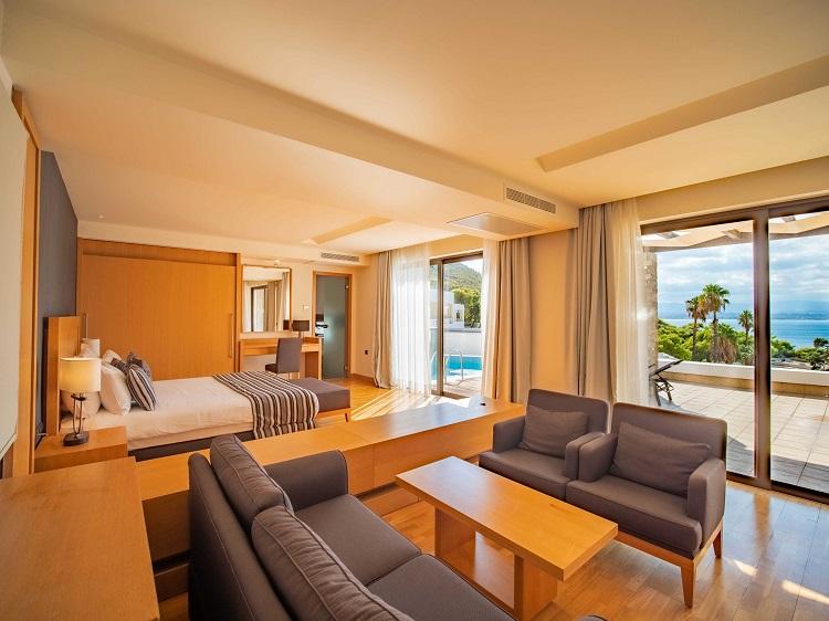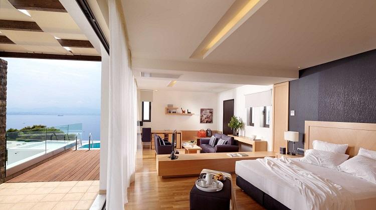 Discover our wide range of Executive rooms, Junior Suites, Deluxe rooms and Deluxe Junior Suites, finding the ultimate retreat for your unforgettable vacations in Loutraki. Enjoy unpretentious luxury and unsurpassable comfort, by staying at one of the spacious and fully functional, aesthetically supreme, and modern suites of our complex. According to your customized needs and desires, find the perfect type of suite and book now, getting ready for a memorable vacation by the beachfront!