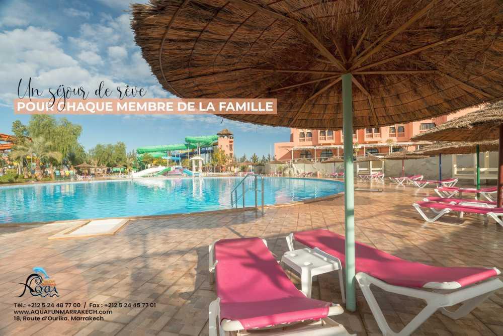 The Aqua Fun Club Marrakech hotel welcomes you to the heart of a 5-hectare estate housing the largest water park in Morocco. Located only 15 minutes from downtown, the hotel offers a magnificent view of the Atlas Mountains.