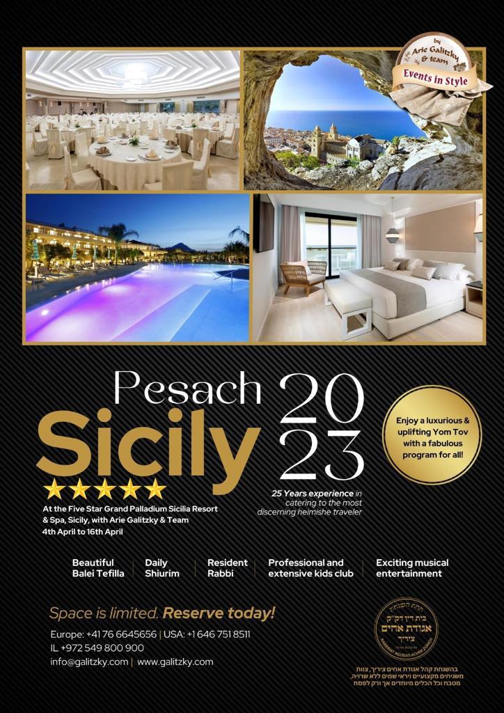JOIN us for our 25th edition of Pesach, that will be held בעזרת השם in Sicily, Italy, at the 5 STAR resort the GRAND HOTEL PALLADIUM SICILY.