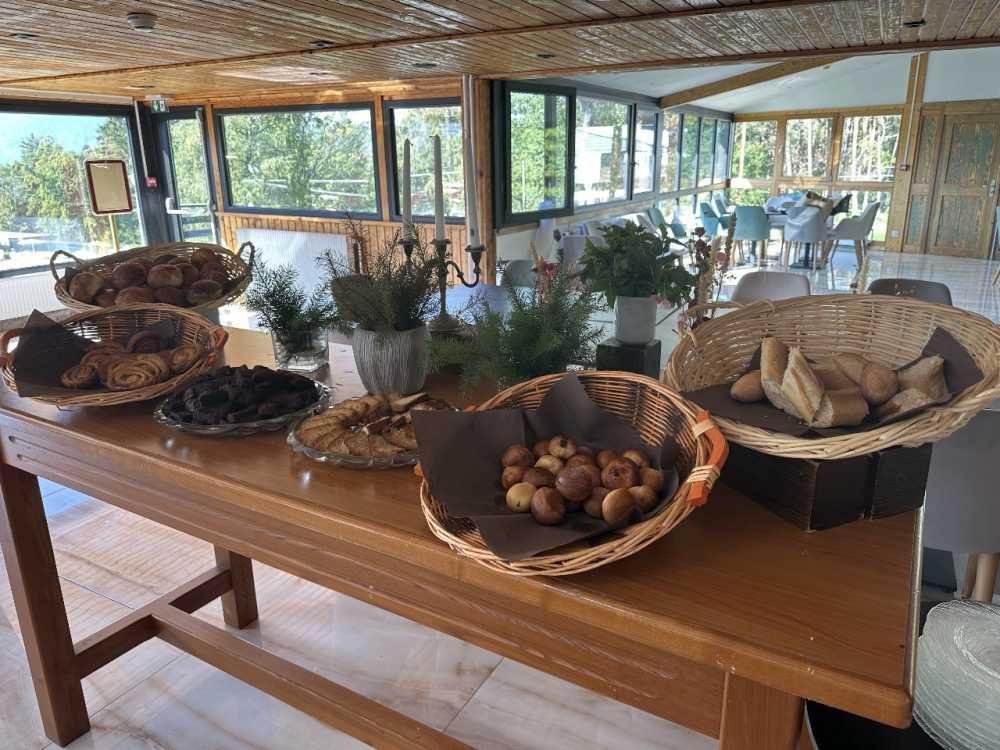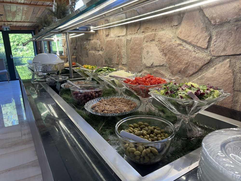 On holidays and Shabbat, meals are served at the table, while during school vacations, they are presented buffet-style.
