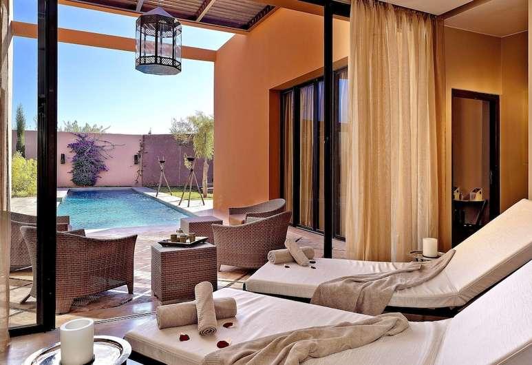 Located in Sidi Youssef Ben Ali in Marrakech, the hotel offers has a gigantic Golf courses, a Spa, a Hammam and a Fitness room to allow you to relax deeply, relieve tension and spend the best family holidays ! Al Maaden Villa Hotel & Spa offers high level wellness services.
