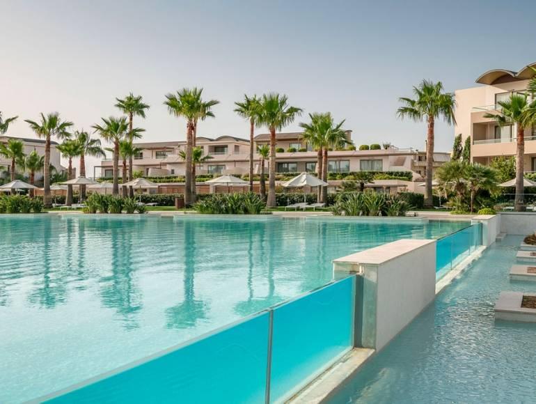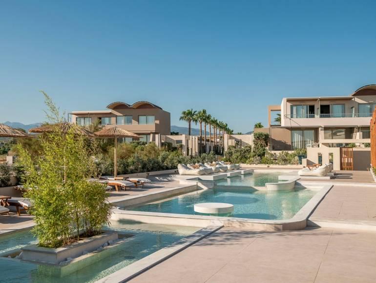 Choose from 287 spacious rooms and 41 suites, including 118 with private or shared pools, and indulge in a serene environment of minimal elegance and "dusted" comfort with touches of fine marble, wood and local natural stone.