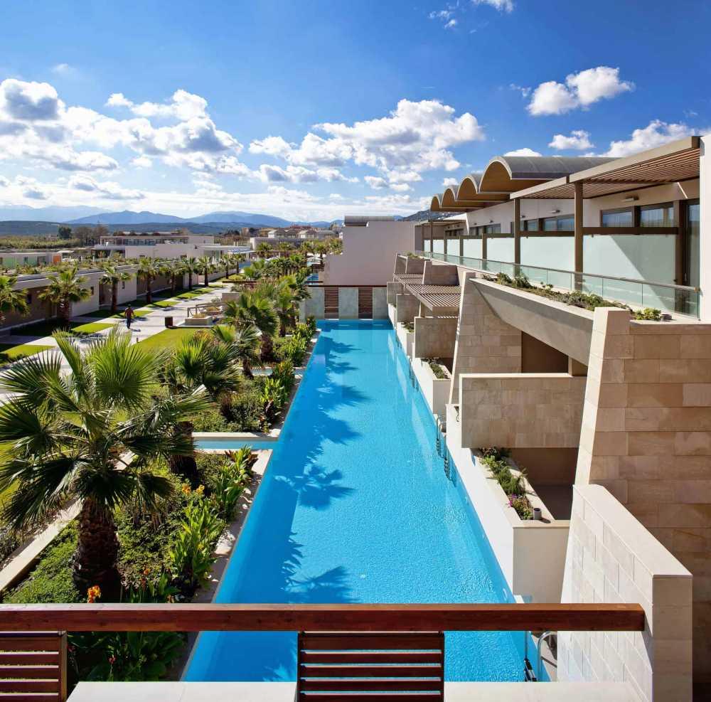 A unique resort in an ideal location in western Crete that offers tranquil luxury along with sheer enjoyment on an exotic beach surrounded by palm trees, landscaped gardens and lots of water . The resort is within driving distance of the airport and the city of Chania, a Venetian-style port known as the most beautiful city in Crete. It is the capital of the western province with rich archaeological sites, a restored synagogue, azure beaches and impressive natural resources.
