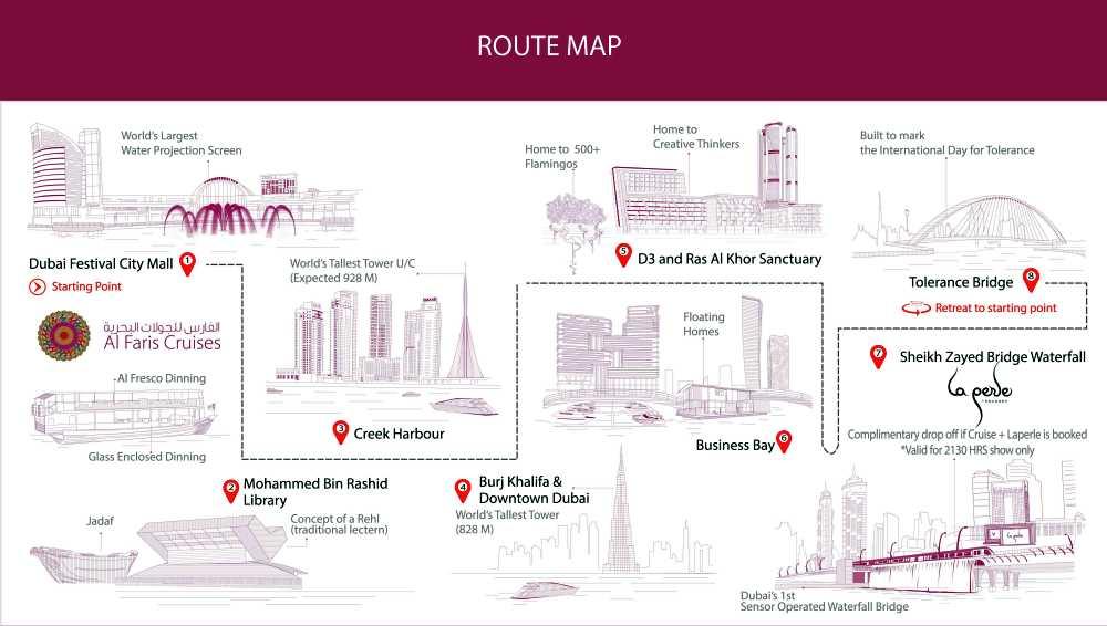 The point of departure and return of the cruise is the most classic for the Jewish tourist and exclusive to our cruise - the pier next to the Hilton Al Habtoor hotel.