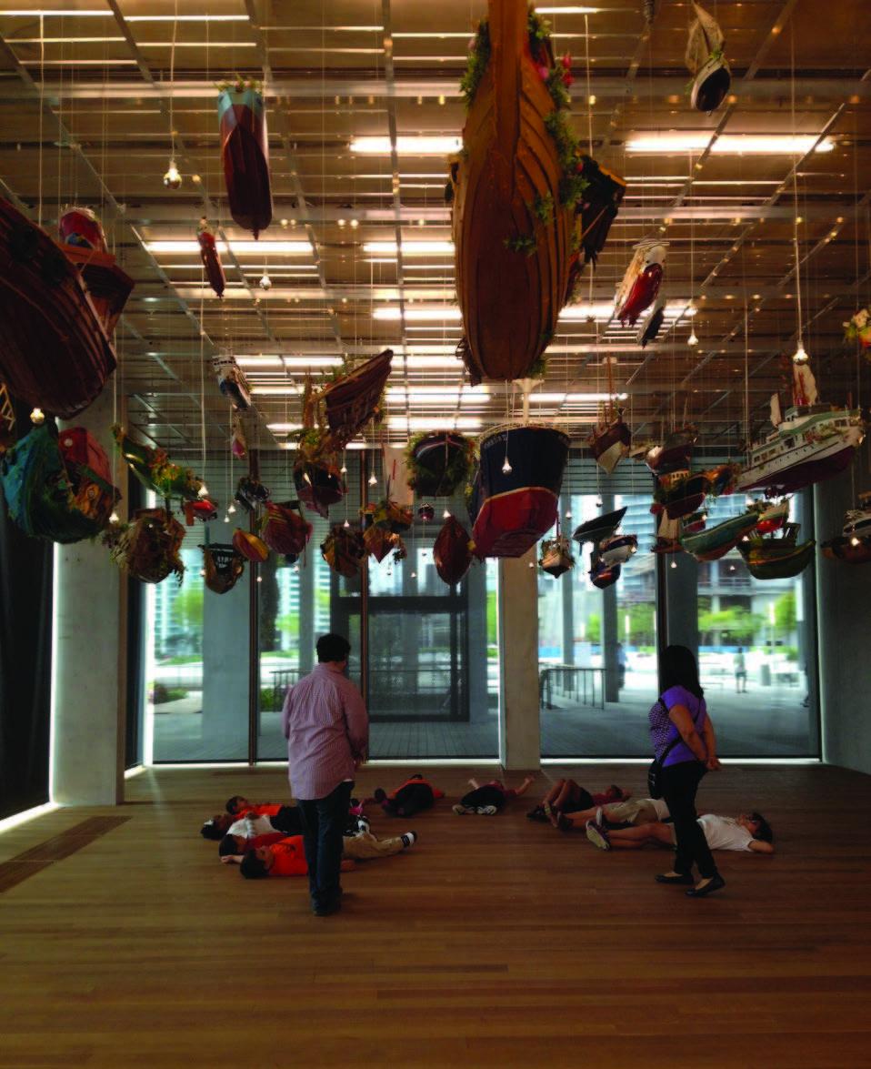In downtown Miami, on the west coast of Biscayne Bay, The Perez Art Museum, within an imposing glass-walled concrete structure opened in the 29- acre Bicentennial Park (formerly Museum Park) in December, 2013 across the causeway from the Adrienne Arsht Center for the Performing Arts. This Hew Locke’s boat installation Perez Art Museum