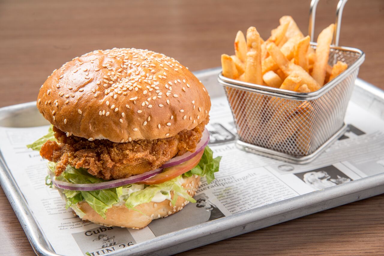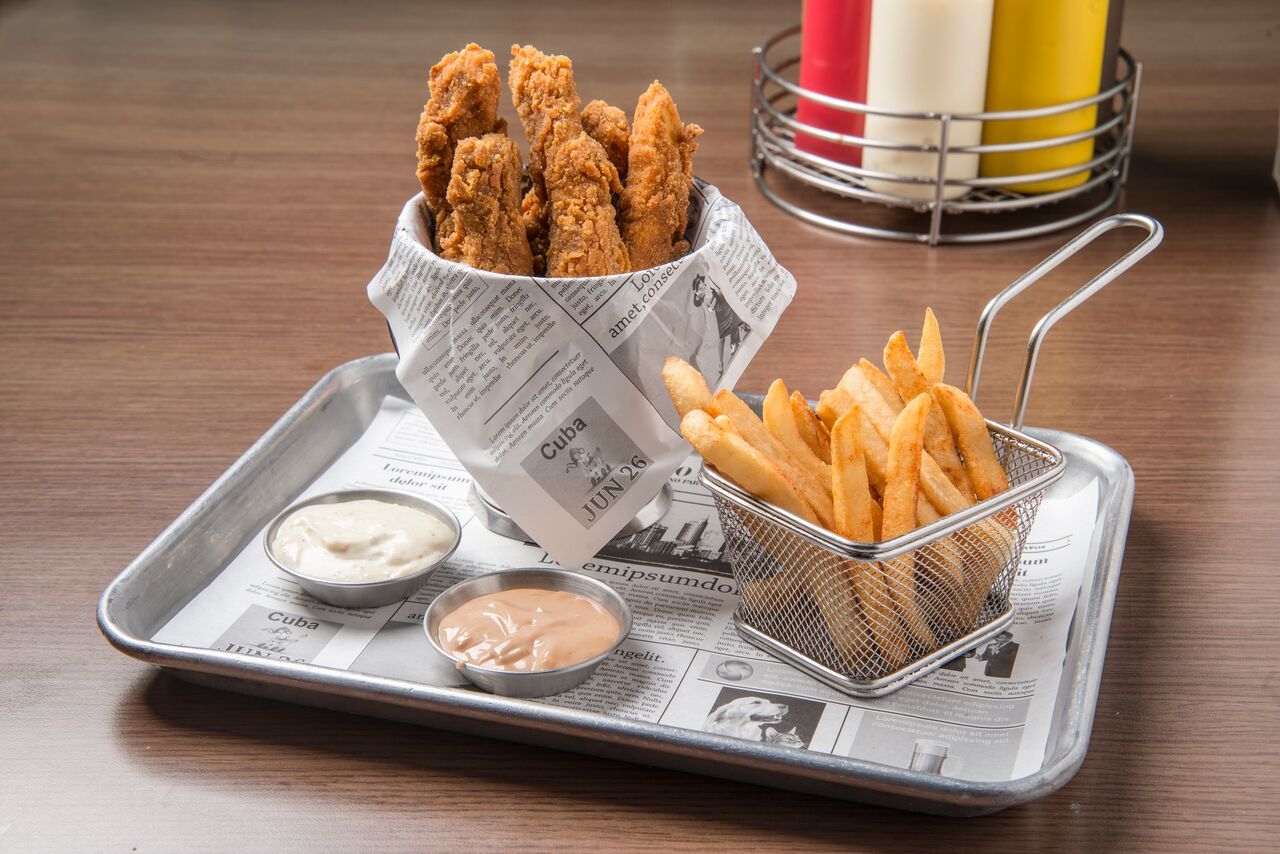 A bar where you can sit and eat burgers, hotdogs and a lot of apetizers, drink beer while you watch your favorite sport.