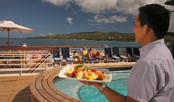 SeaDream is an all-inclusive cruise, which means that all food – and just as importantly – wine, champagne and spirits (apart from a very few top premium brands) are included in the price. This really does contribute to what quickly becomes a very relaxed and fun atmosphere on board. There is also no tipping or gratuties.