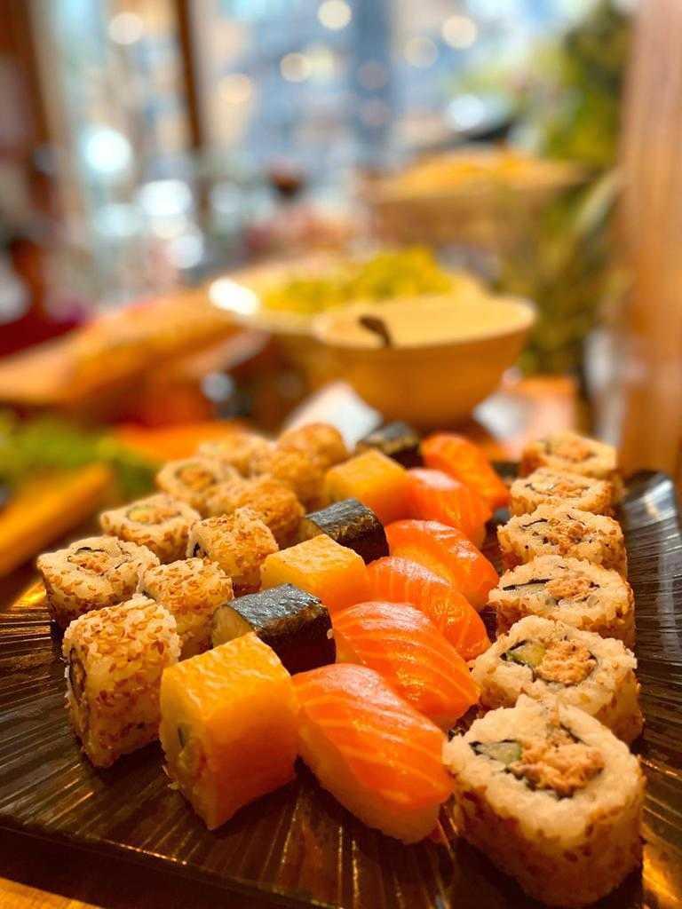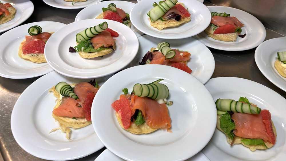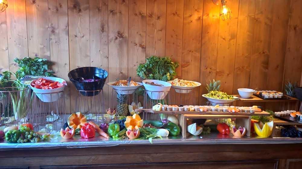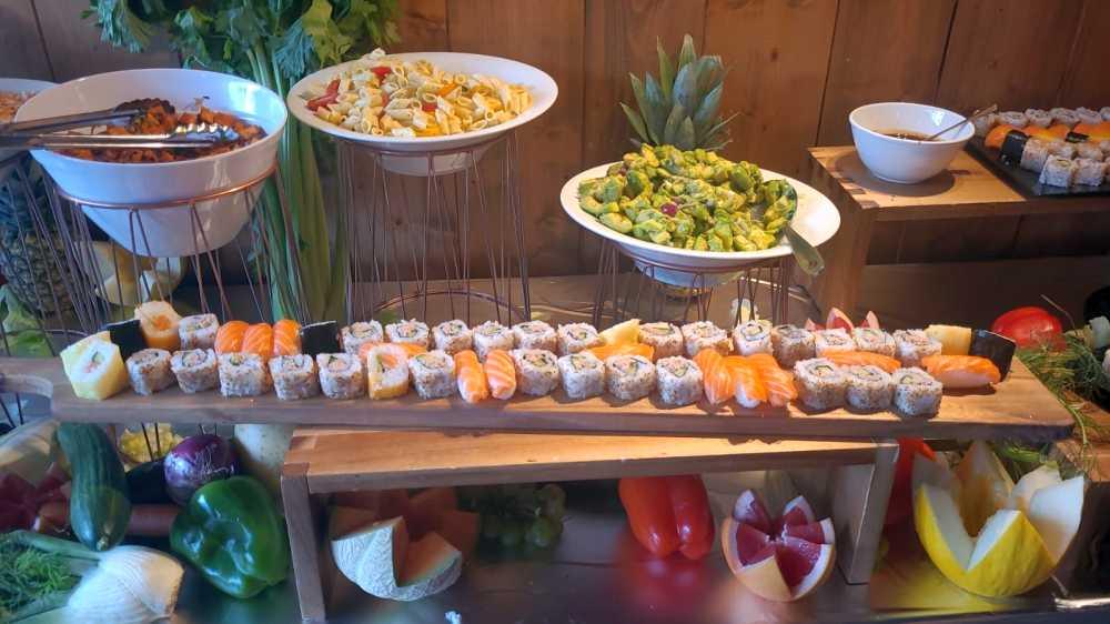 - Variety of salads, meat and fish , sides, and hot specialty. Gourmet dessert plate
